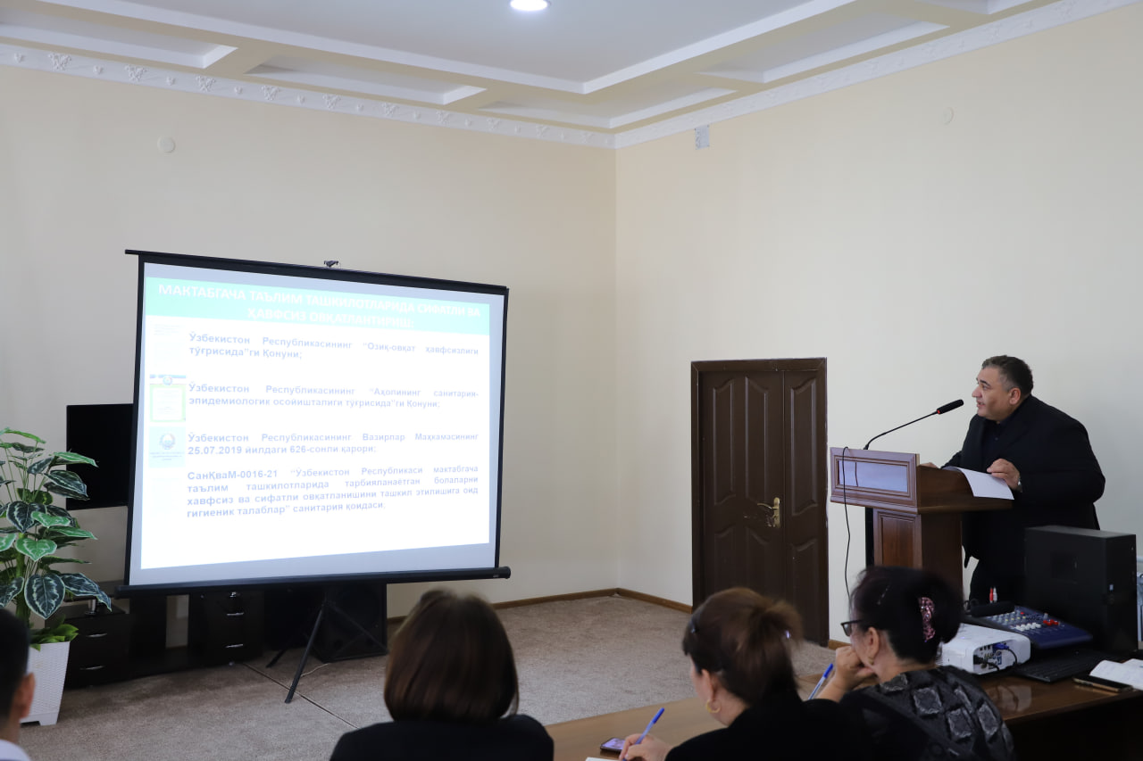 O‘quv-seminar davomida ishtirokchilar sohadagi qonunchilik, gigiyenik talablar va sifatli ovqatlanishni ta’minlash bo‘yicha amaliy yo‘nalishlar haqida ma’lumot oldilar hamda o‘zlarini qiziqtirgan savollarga javoblar oldilar.