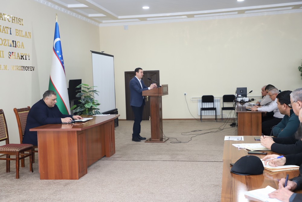 O‘zbekiston Respublikasi Prezidentining 2024 yil 14 noyabrdagi “Tadbirkorlar huquqlari va qonuniy manfaatlarini ishonchli himoya qilish chora-tadbirlari to‘g‘risida” gi PF-184-sonli farmoni, O‘zbekiston Respublikasi Prezidentining 2022 yil 13 sentabrdagi “Tadbirkorlik sub’ektlari faoliyatida tekshiruvlar o‘tkazishini muvofiqlashtirish tartibini takomillashtirish chora-tadbirlari to‘g‘risida” gi PQ-374-sonli talablari asosida, bilim ko`nikmalarini yanada oshirish, 2025 yil davomida o‘tkazilgan tadbirlarida aniqlangan kamchiliklar va kelgusida shu kabi kamchiliklarga yo‘l qo‘ymaslik bo‘yicha yig`ilish o`tkazildi.