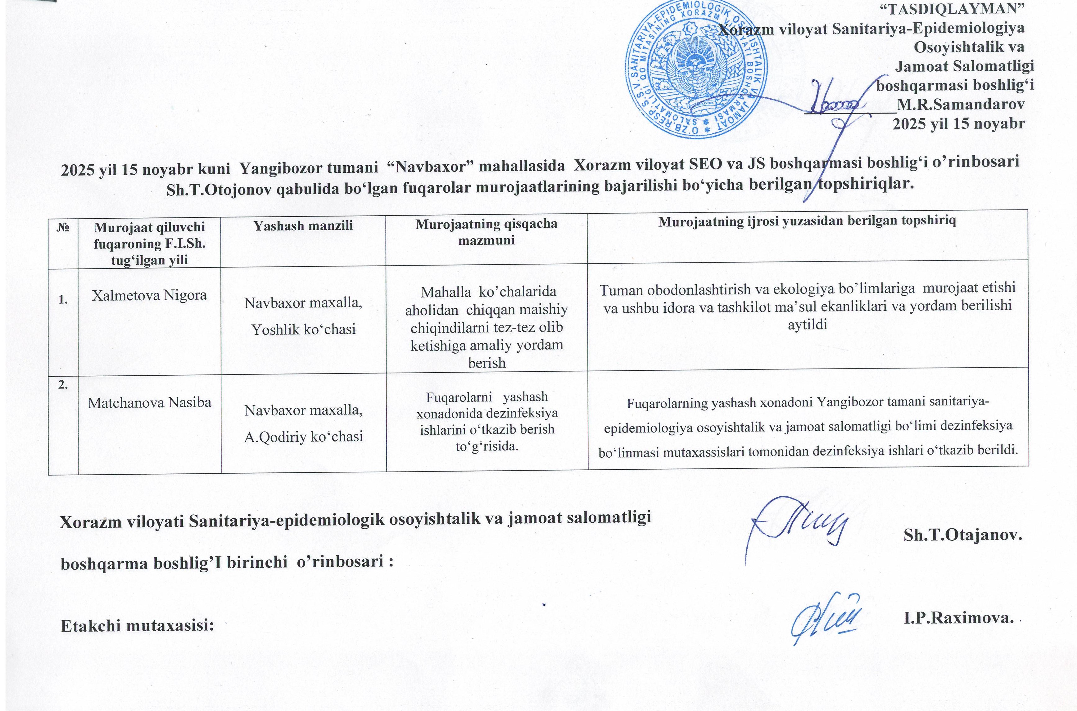 - Jismoniy va yuridik shaxslar murojaatlari / Hududlarda o`tkazilgan murojaatlar / 2025 yil