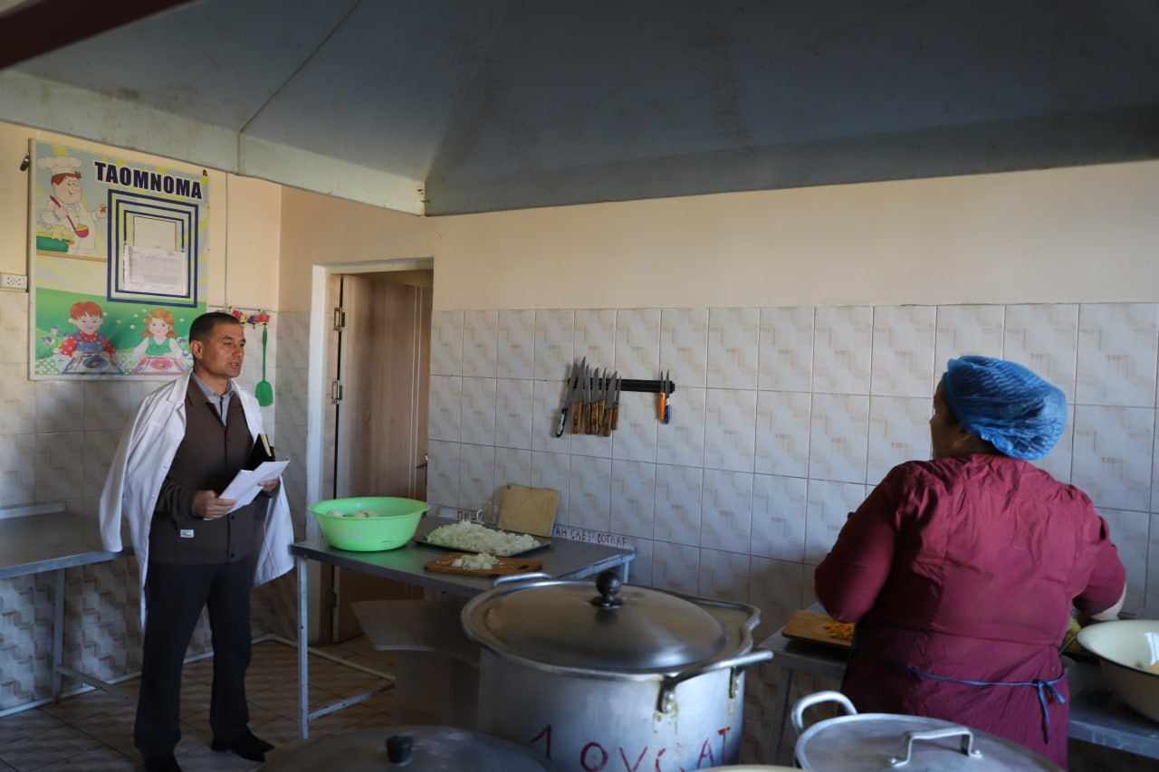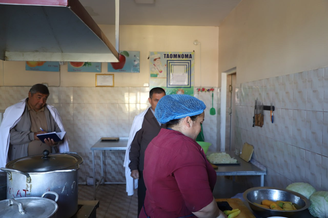Tekshiruv jarayonida Xiva tuman 1-son maktabgacha ta’lim muassasasidagi oshxona faoliyati ham o‘rganildi. Oshxonada ventilyatsiya tizimi to‘liq yo‘lga qo‘yilmagani, pishgan va xom go‘sht mahsulotlari saqlanadigan joylar sanitariya qoidalariga mos joylashtirilmagani aniqlandi.